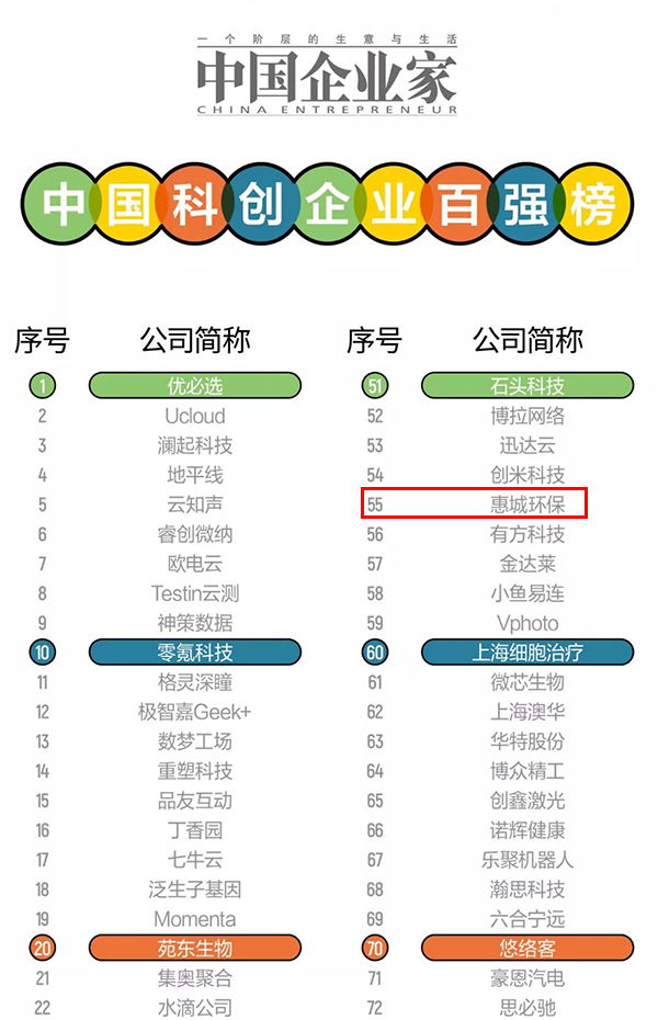 近日,《中國(guó)企業(yè)家》發(fā)布“科創(chuàng)企業(yè)百?gòu)?qiáng)榜”,我公司青島惠城環(huán)??萍脊煞萦邢薰疚涣衅渲小?/span>